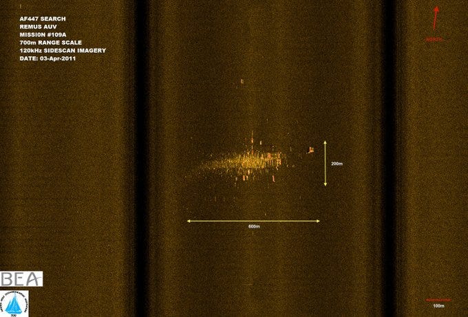 It’s interesting to compare what they saw there with the wreckage of the missing Air France jet, Air France 447, that was found on the seabed of the Atlantic after its disappearance in 2009.