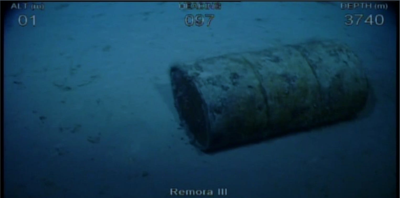 The answer is that no, it won’t sink in, and the reason that we can say that confidently is that in the course of earlier scans along the 7th arc in this vicinity, search crews have found smallish objects there were quite plainly just sitting atop the ocean floor, for example a steel drum: